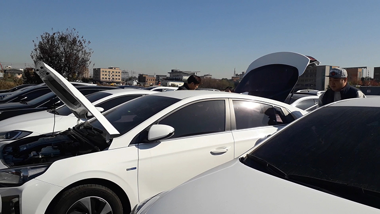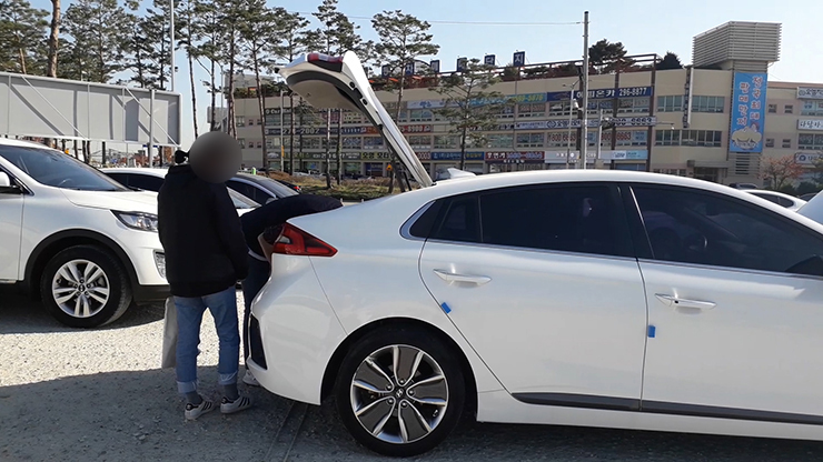 상담을 통하여 추린 차량 3대를 차례대로 확인해보기로 했습니다! 우선 가장 멀리 있는 차량부터 가까이 있는 순서대로 확인하겠습니다 ㅎㅎ 첫 번째 차량은, 우리 고객님들께서 홈페이지를 통하여 미리 봐두신 아이오닉 차량입니다.